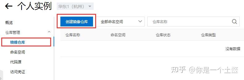 然后点击左侧的镜像仓库,创建一个镜像仓库: