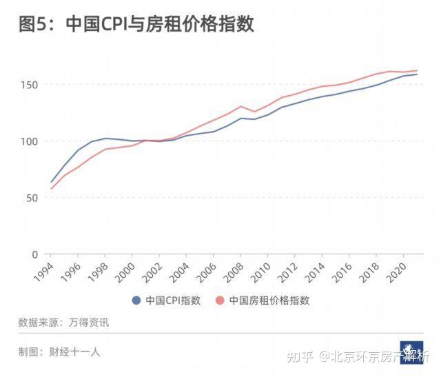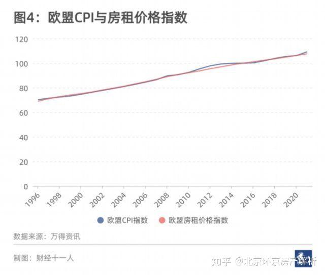 和美国数据一样,日本、欧盟、中国的相关数据都显示,在比力长的时间内,CPI指数增幅和房租价格指数增幅根本一致。