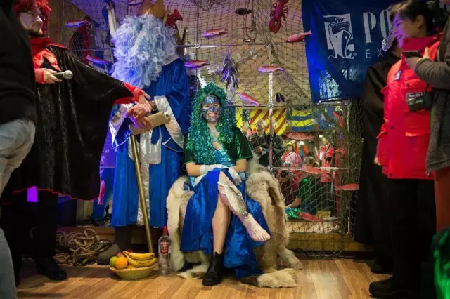 祭海神派对,船上工做人员装扮成海神波塞冬与北极熊的容貌,庆贺狂欢。