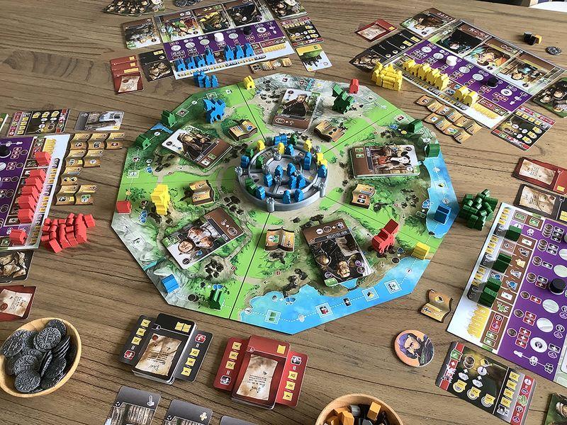 游戏一共8个颜色,16个种族,可变玩家才能,核心是建造、增加区域战斗力+冒险卡得分。德式玩家和美式玩家喜好差别的游戏气概,但在此能够协调共融,德式玩家可积累资本,美式玩家可尽情战斗。