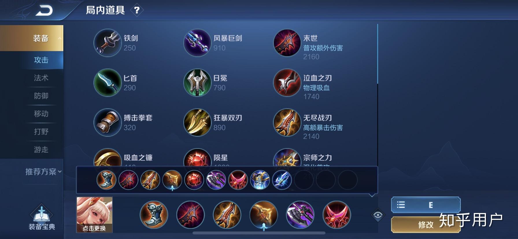 若敌方控造较多,如廉颇/关羽/牛魔等,中期在做完无尽或者每日的时候能够弥补一个抵御鞋;大后期酌情将抵御鞋换成影刃,来到达最初一档攻速阈值。