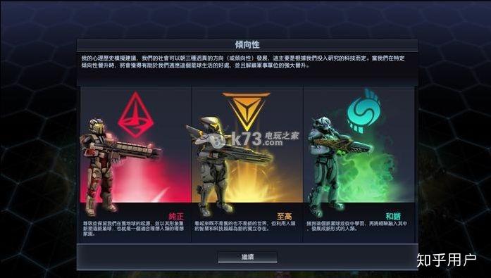 而与圆形科技树相共同,文明太空里的单元晋级和附加成功前提是按“倾向性”来决定的,有“纯正”“至高”“协调”三种倾向性,玩家选择差别标的目的的科技会解锁必然的倾向性点数,到必然水平就会让单元向此中一个标的目的晋级
