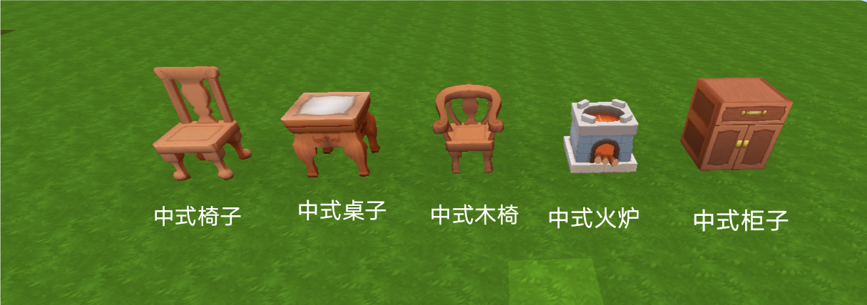 中式椅子:红杉木做的椅子,放置后可坐在上面歇息。(配方:红杉木板×3,细果木树枝×4)