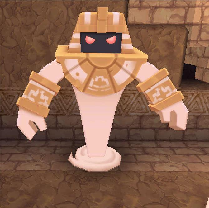 沙灵保卫:主动且长途攻击。生命值很高,250点。一下能够打掉你半管血量。次要呈现在戈壁遗迹。把破损的元素核扔地下就会呈现沙灵保卫。