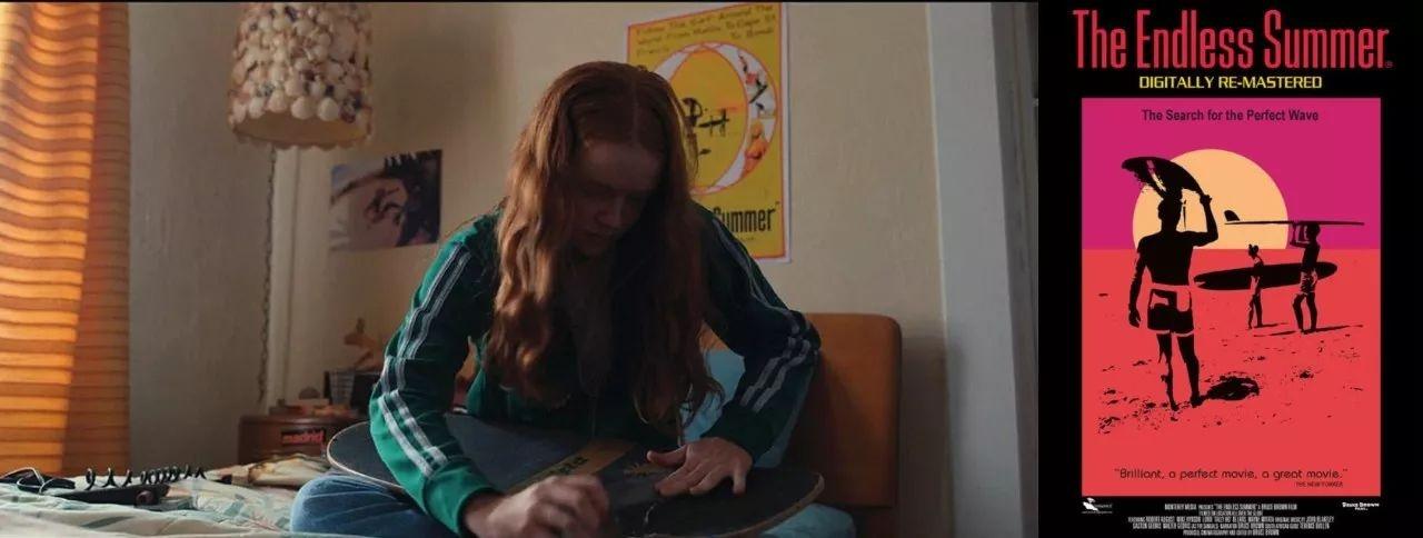 【60】19:15 在《怪奇物语》中,每小我的墙上城S有海报。麦克斯的海报是1966年的《无尽之夏》,一部关于加州冲浪少年的纪录片,很合适她。