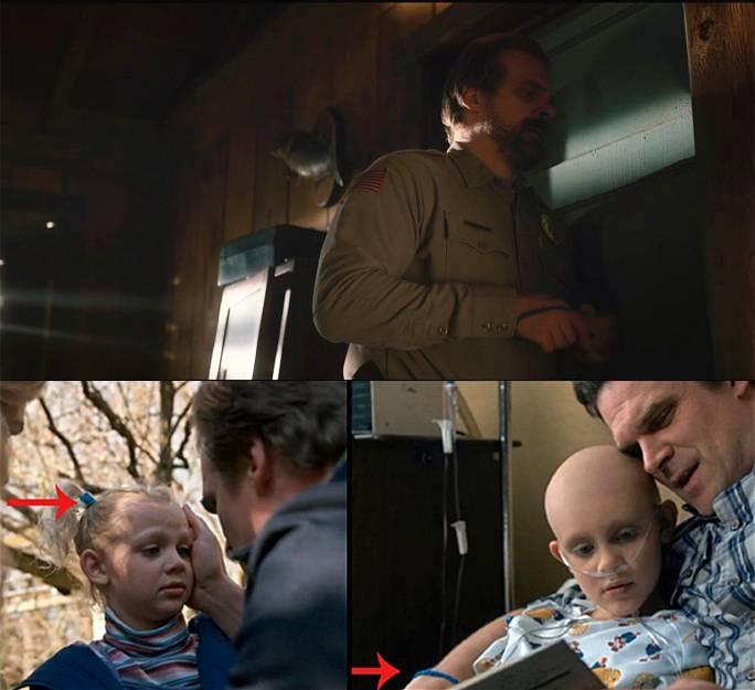 【40】15:22 霍伯与El大吵一架后,第二天早上霍伯隔着门向El报歉,那时他不断玩弄动手腕上的一条蓝色手链。那是上一季里警长女儿的发带。霍伯不断戴着它。
