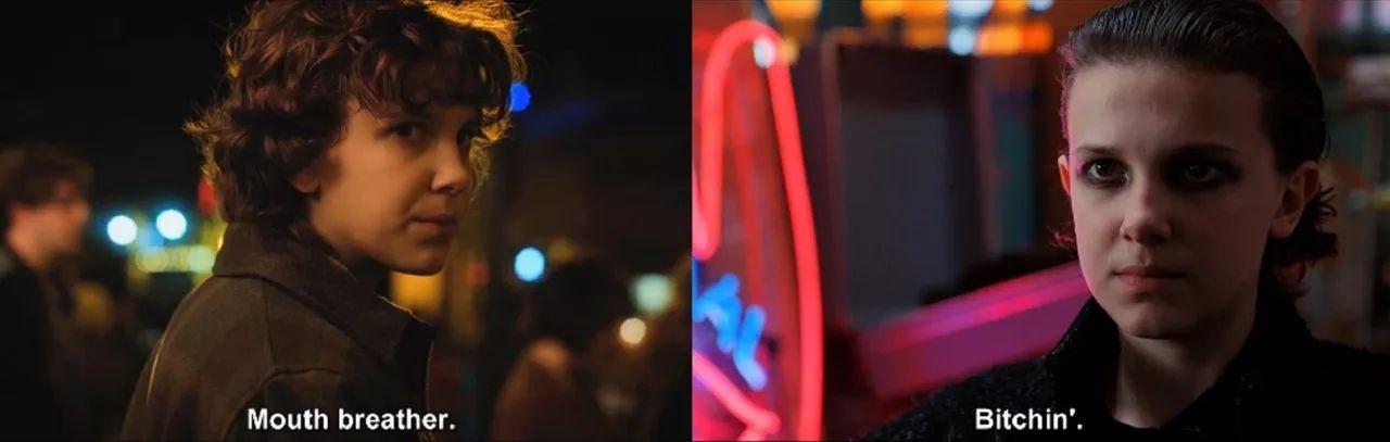 【66】07:19 El被目生汉子碰了一下,她回头骂了句“Mouth Breather”,那是上一季男孩们教她的词儿,被英语欠好的El学歪了。类似的话还有朋克们教她的“Bitchin”,从El嘴里说出来实的不像脏话...后来她还跟警长学了那个新词。El实的很酷,并且是那种很纯净的酷。