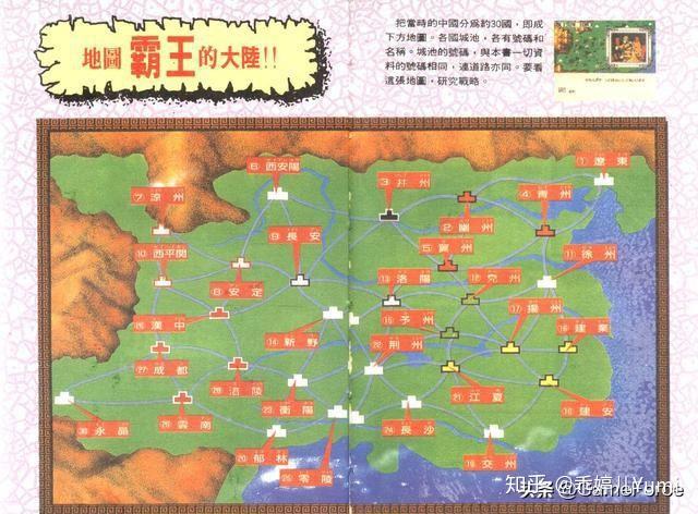 游戏的地图内容停止了精简,只要30个城S,表示形式没有接纳名誉的数字区块,而是用道路将联系关系城S毗连起来,更曲不雅地展示了三国期间的天文位置,那个设想也被名誉的《三国志3》所采用,成为了后续做品的标配