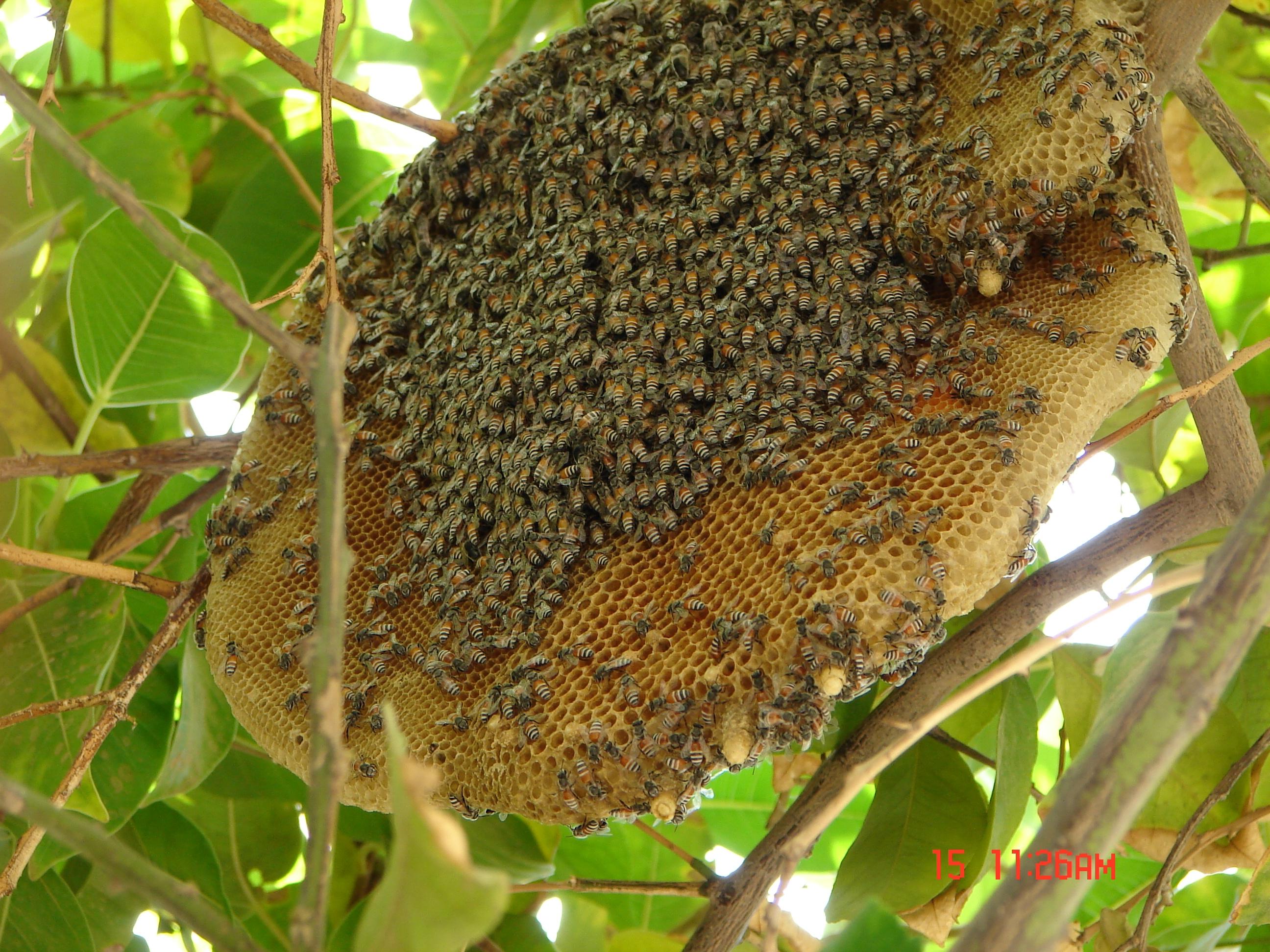 蜜蜂属(Apis sp,详细物种不详。印度有好几种蜜蜂属物种同域散布。)