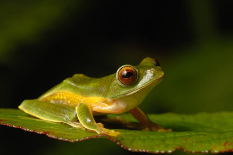 树蛙属(Rhacophorus sp,详细物种不详。配图是伪马拉巴尔树蛙 Rhacophorus pseudomalabaricus,散布在印度西南部海岸一带,未必是剧中出演的那位。)