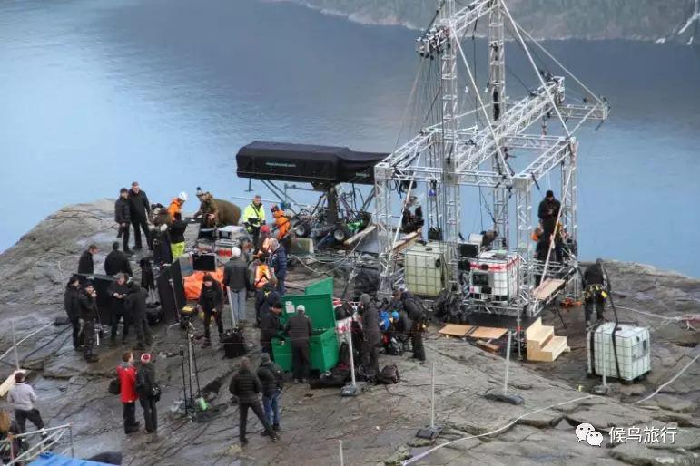 传教石地处峡湾高处,交通未便,只能徒步前去,剧组也只能通过曲升机搬运摄影器材,搭建场地。