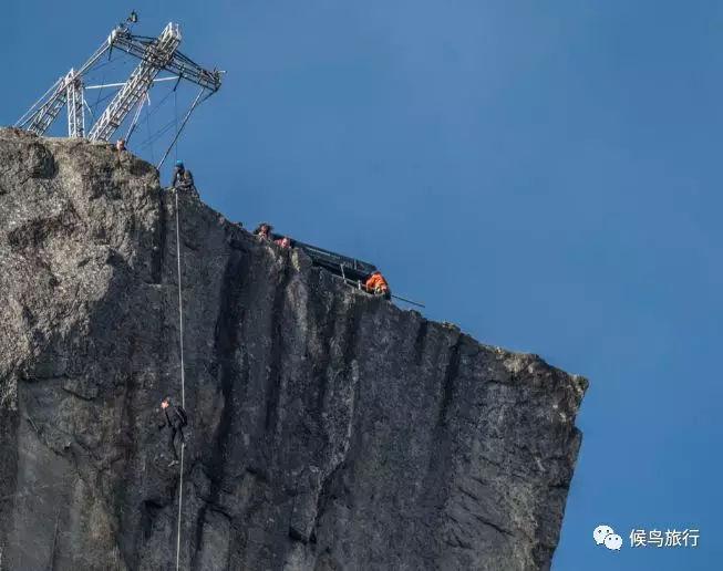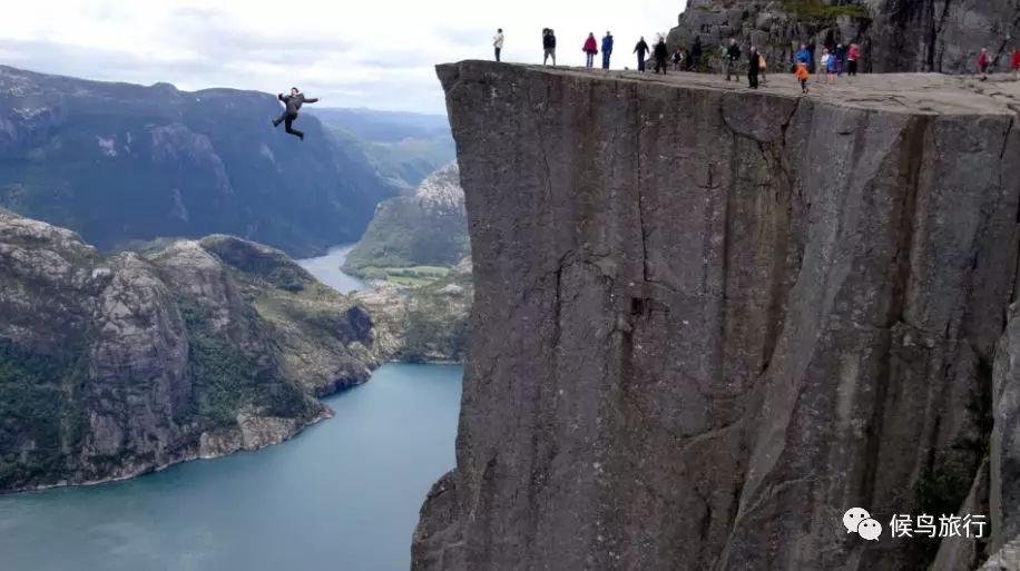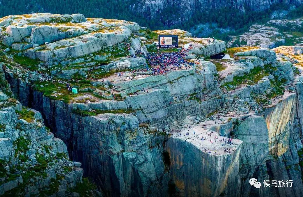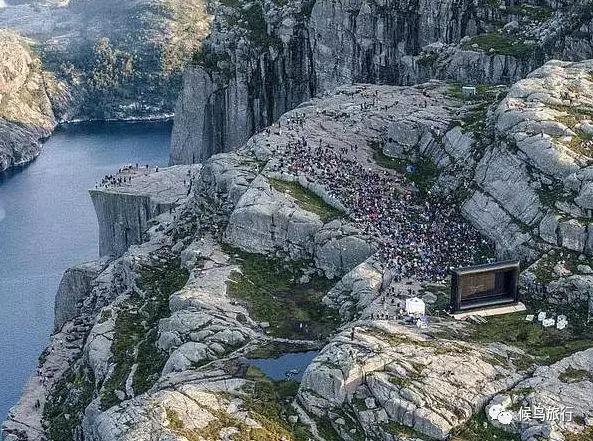挪威峡湾风光十分壮美,站在传教石上俯瞰峡湾,更是让人惊讶,远不雅传教石,那小小的人影和庞大的落差构成强烈比照,十分震撼。