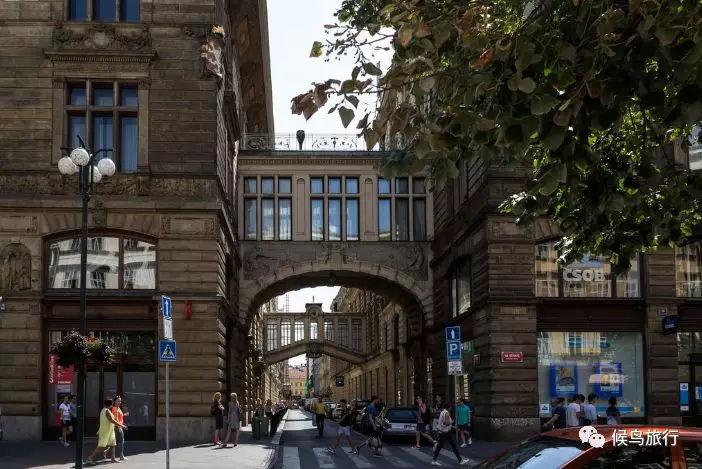Na Příkopě街是一条斑斓的林荫大道,此中逾越Nekázanka街的入口有一组廊桥,类似意大利威尼斯的感喟桥,高架的双廊毗连着两栋建筑,十分有特色。