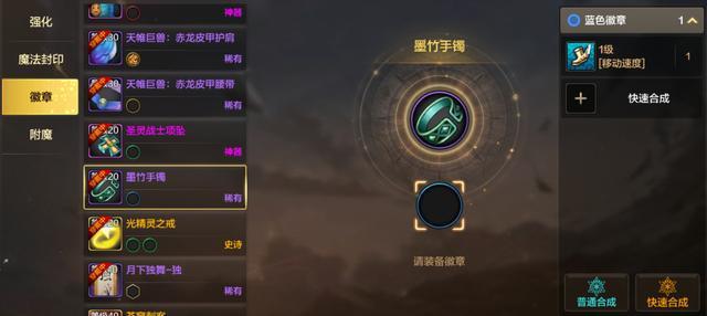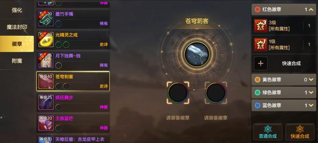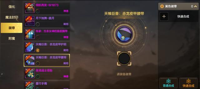 贫乏徽章的情况下,选择要合成品级,系统会主动帮你购置需要的胚子。