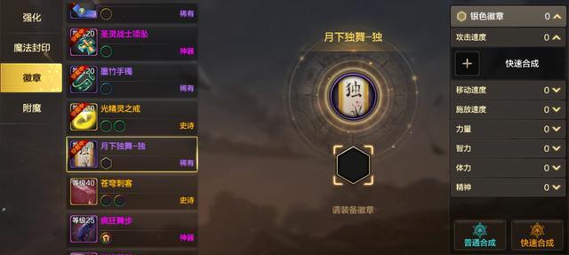 银色徽章分为两大类,一类是攻击、挪动、施放速度,一类是力量、智力、体力、精神。