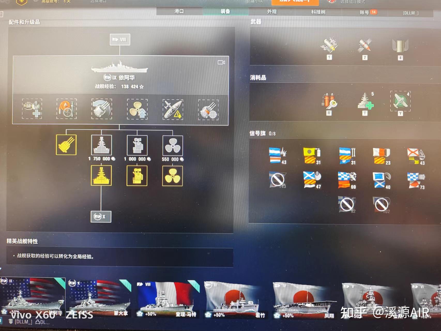 关于衣阿华的配件,别离是防空炮耐久,精英损管,转炮,弹射起步,隐蔽和大精度