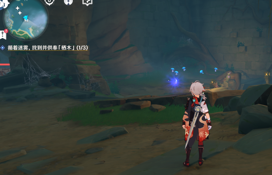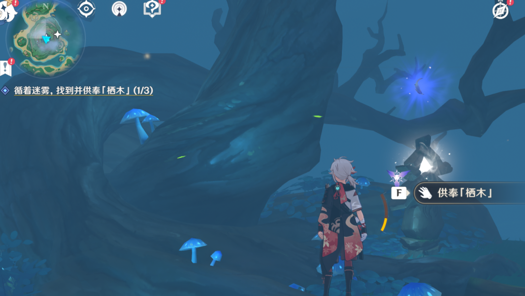 在寻找完蓝标下方的羽毛后,回到栖木树那里供奉