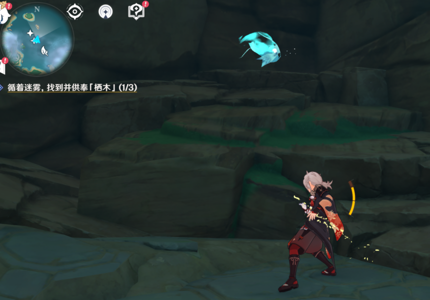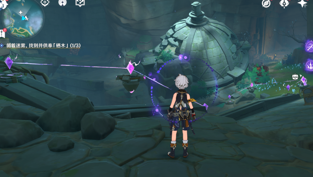 触碰栖木,完成供奉,同时该区域迷雾消失