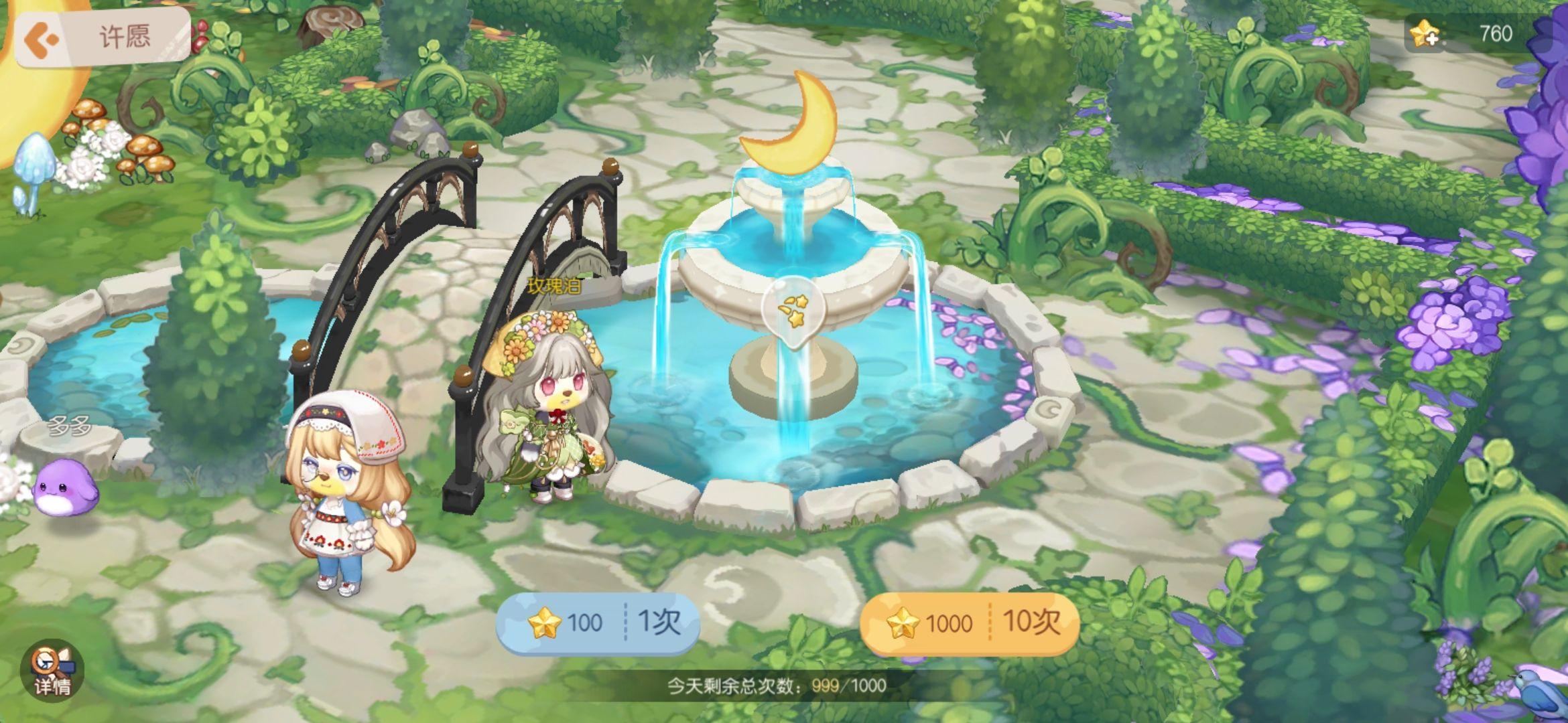 月亮水池能够利用友情星星停止祈愿,获得服拆。