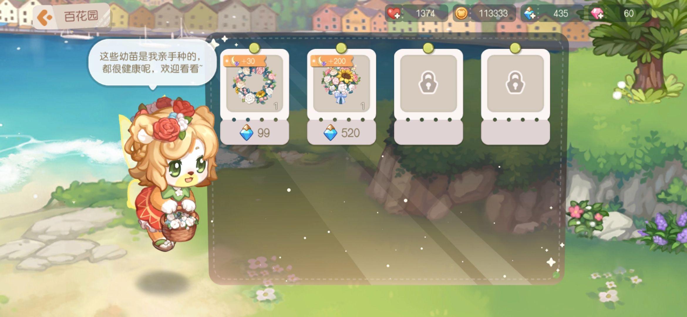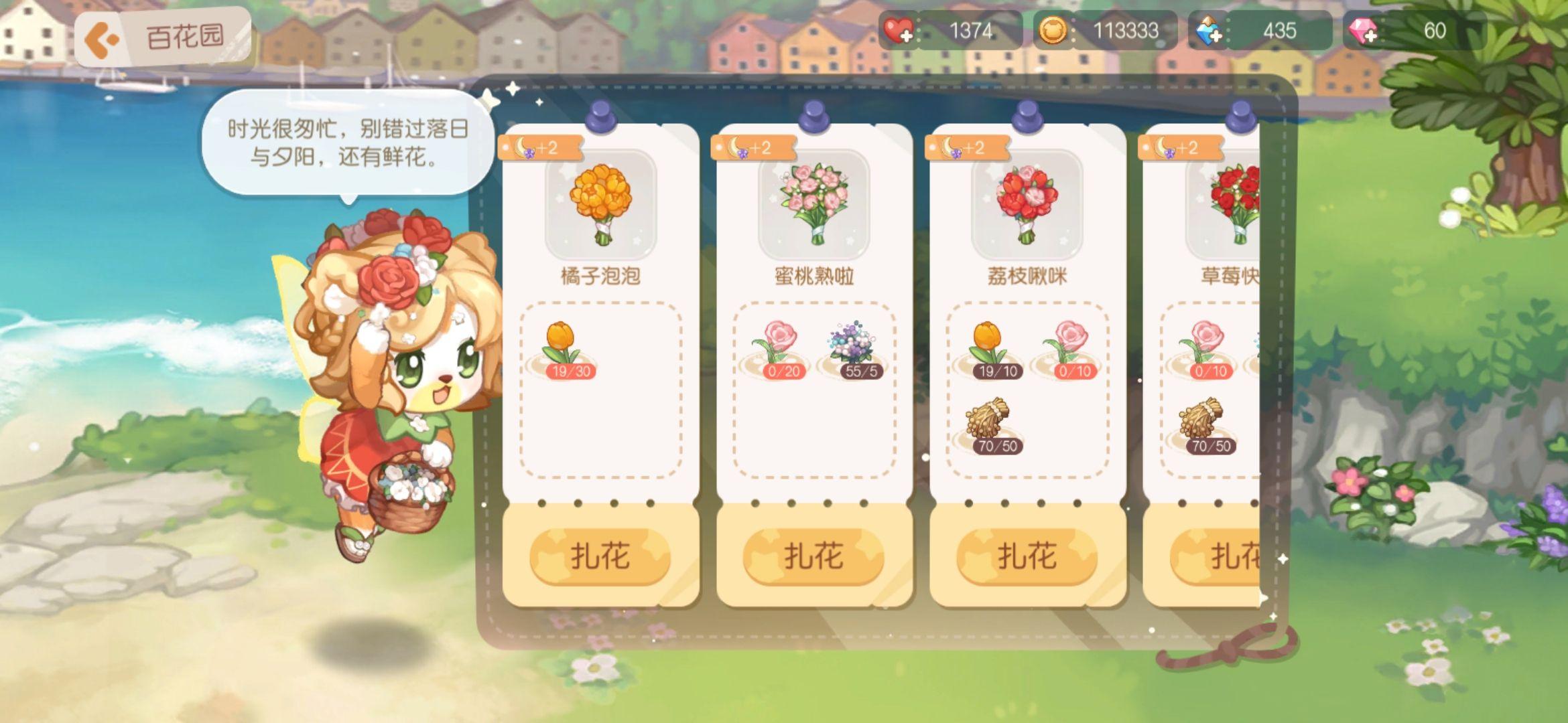 每天都能够来采花,瞄准花丛中亮晶晶的处所就OK,然后能够找风儿扎花送给老友刷亲密度。