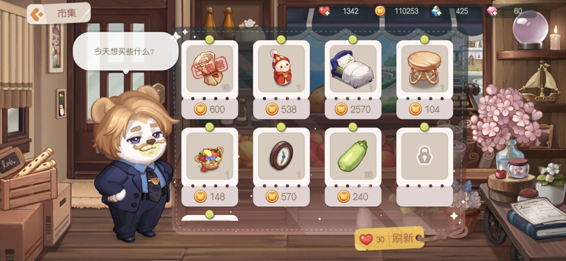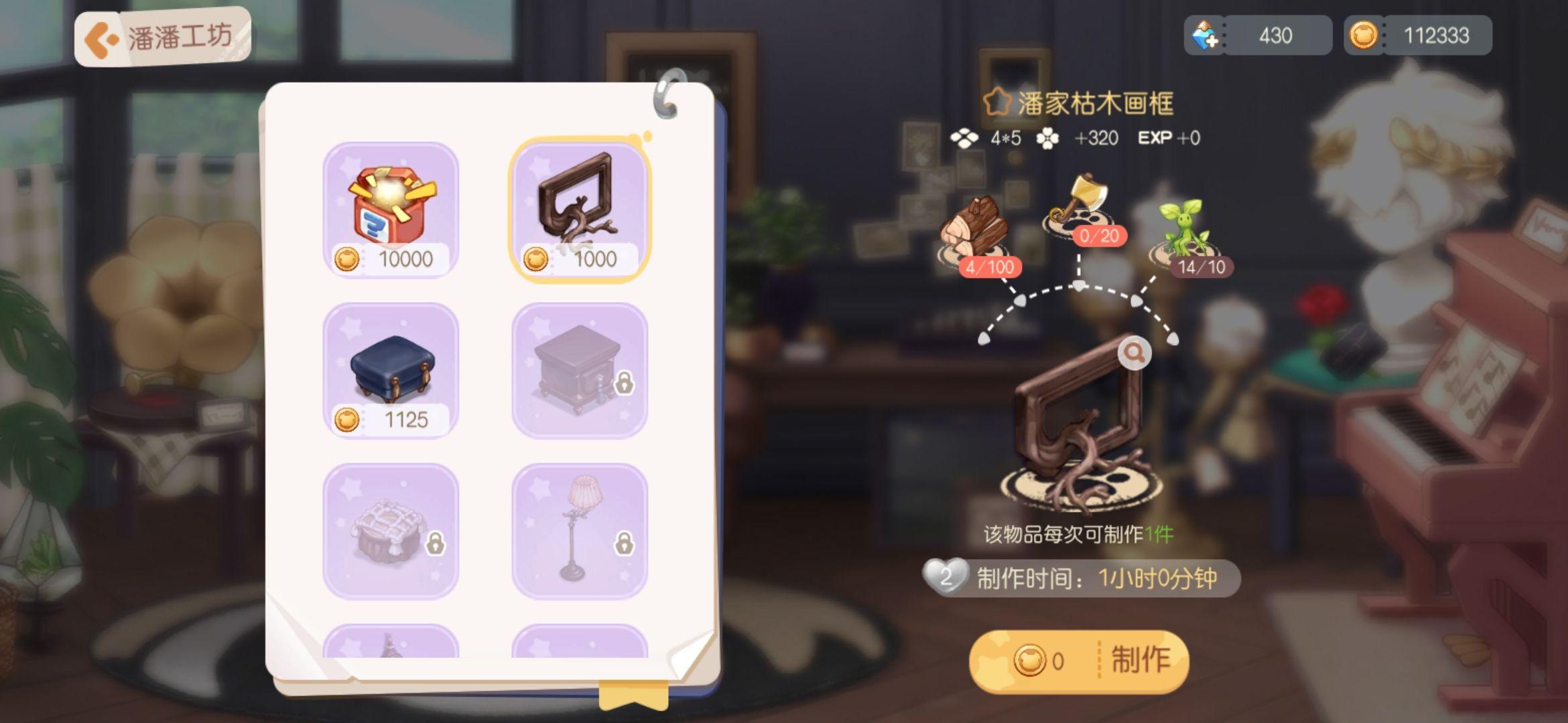 潘潘的亲密度二级,能够造做家具。同时不建议在家具店花钱!