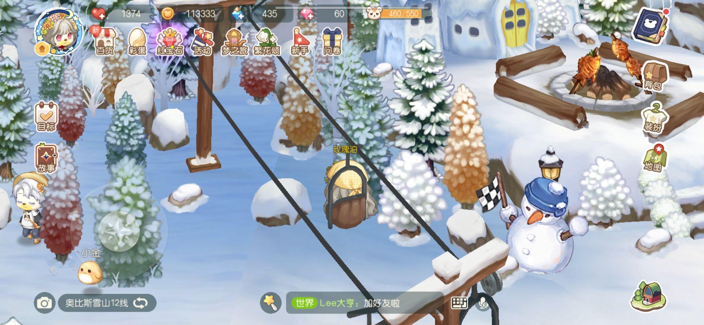 雪山上能够坐缆车和垂钓,所以一共是有三个垂钓点,每个点的鱼类都差别。