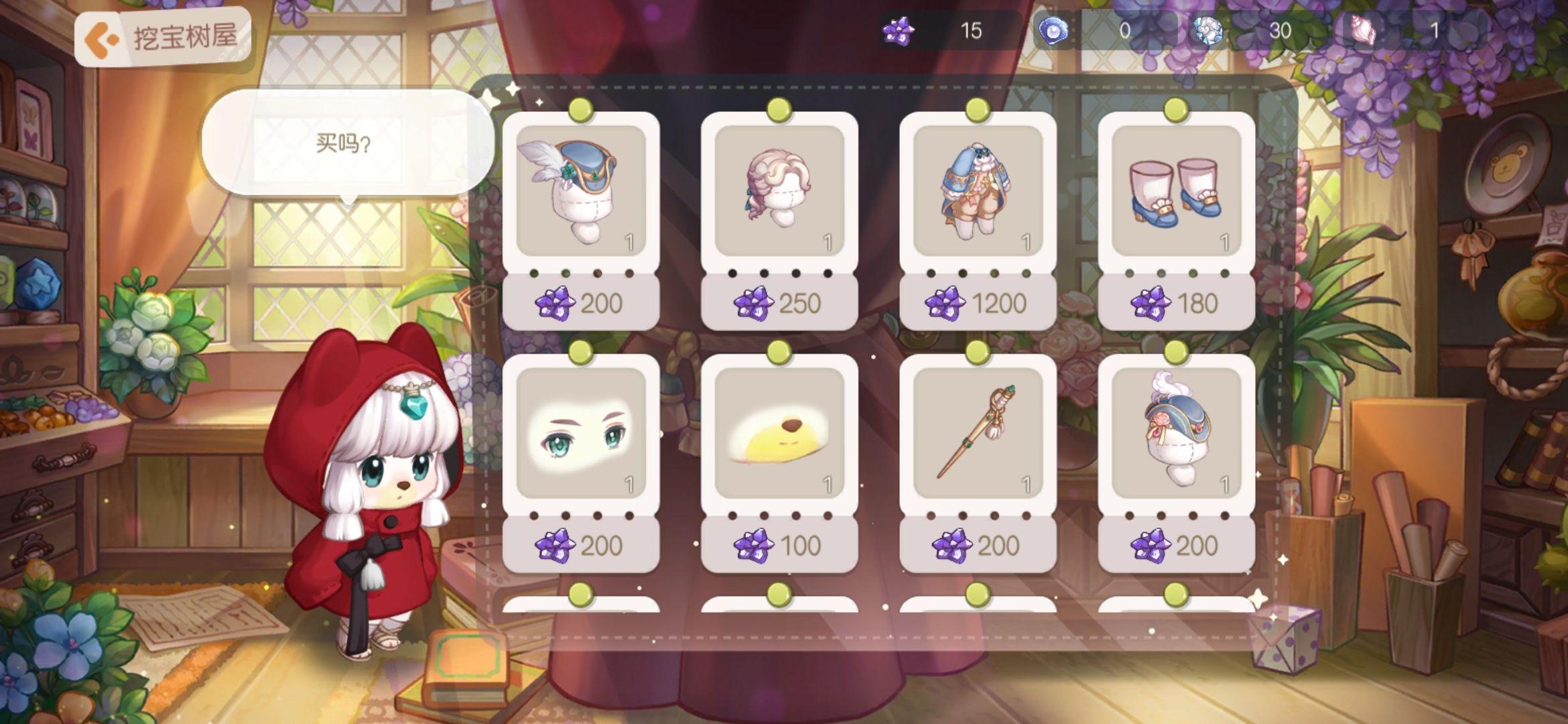 挖宝树屋中可用挖宝获得的点数兑换服拆。