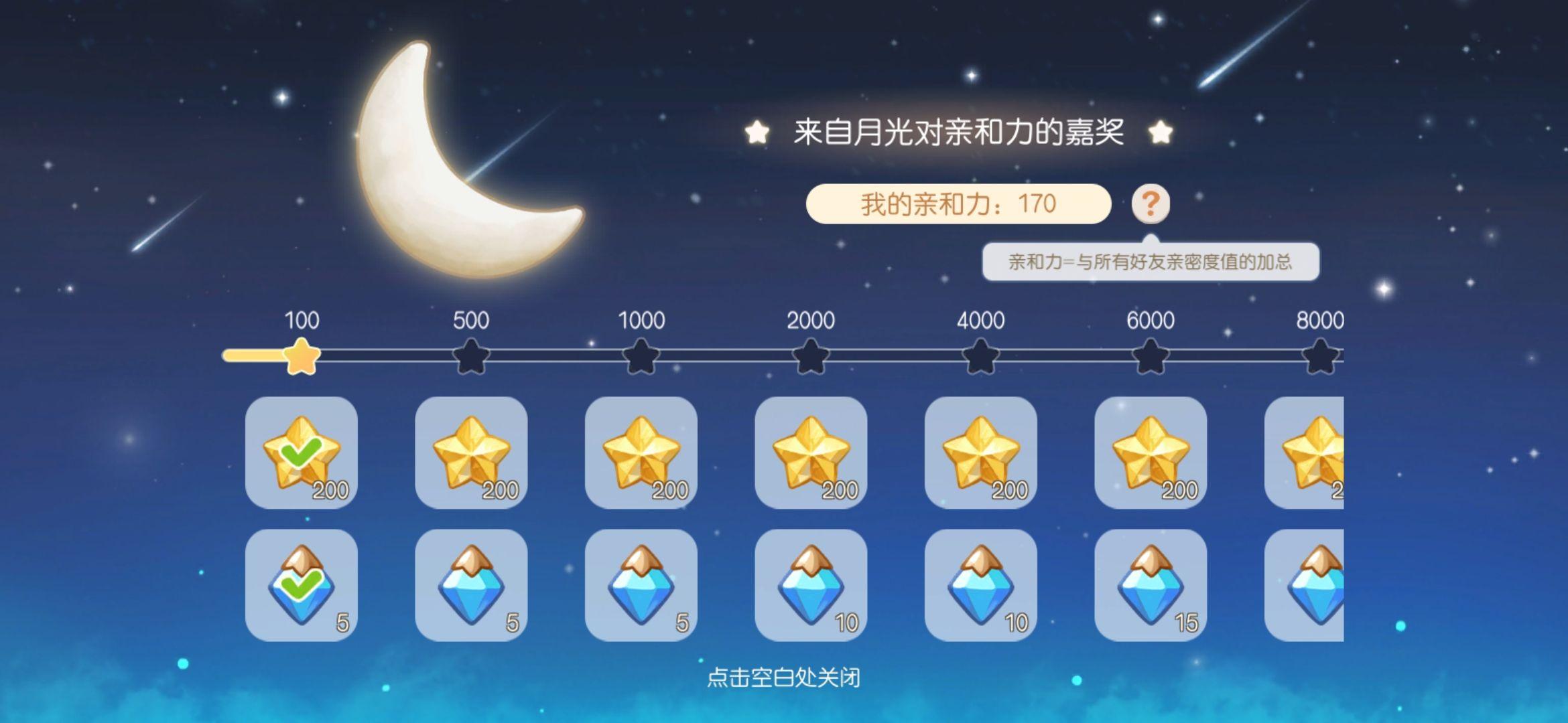 点一下月亮能够有亲和力显示,会有对应档位的奖励。