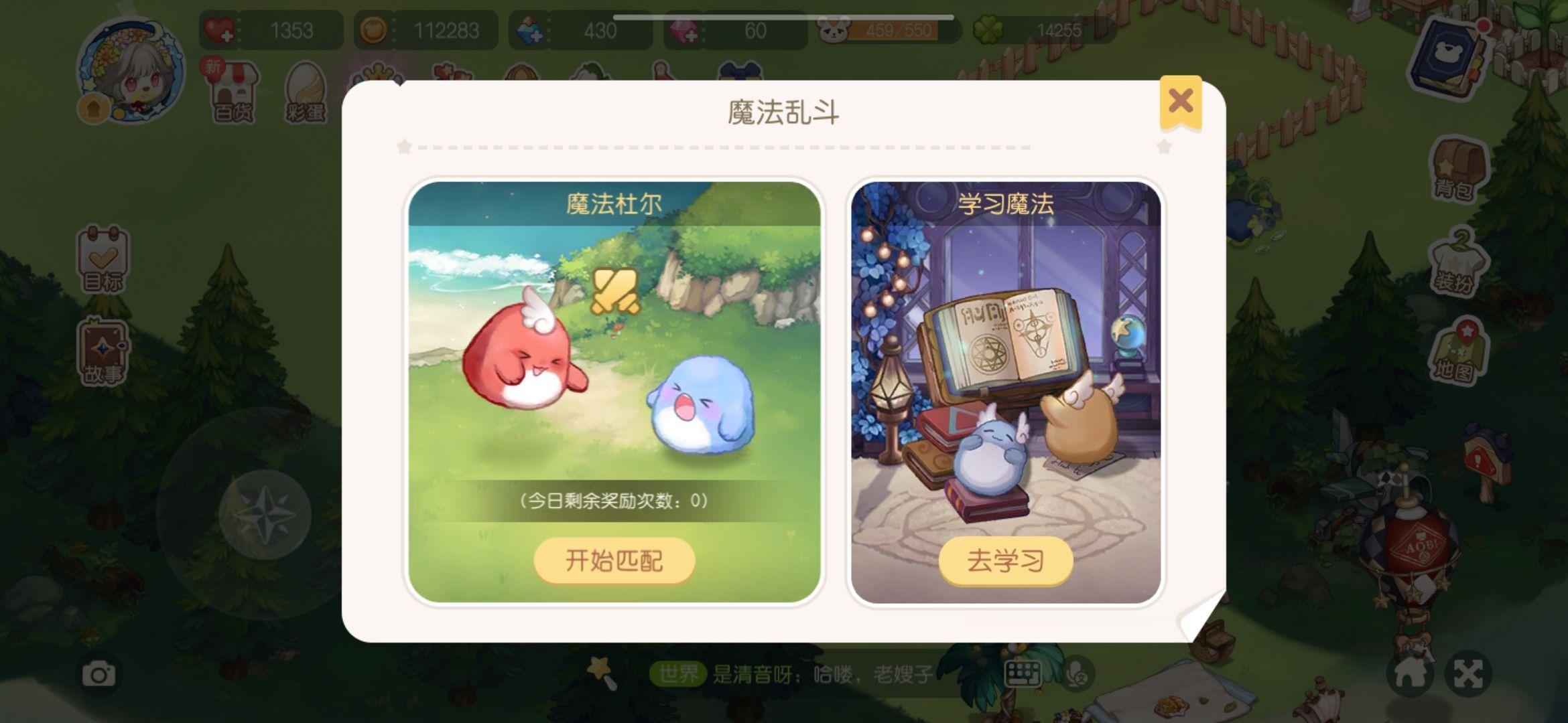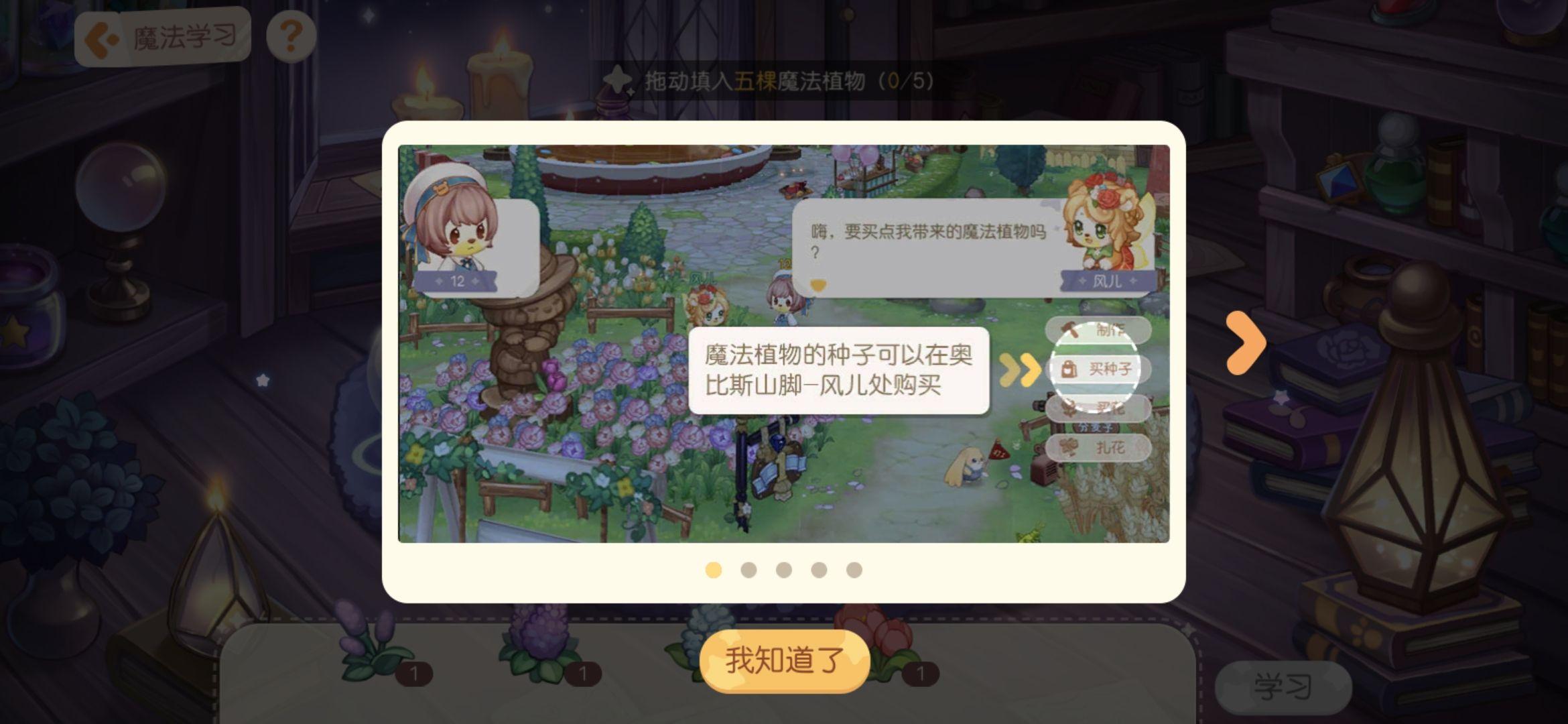 带小精灵来进修魔法,每一次需要5个魔法动物。进修魔法才气在小精灵对战中获胜,每天能够对战三次,成功+10晶钻,失败+5晶钻。进修魔法之后再去对战哦!