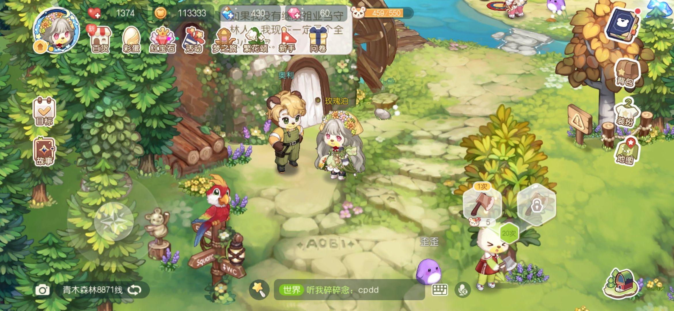 青木丛林能够砍树,搞蜂蜜和摘蘑菇,不建议每天都来拉满,有需要了再来,或者每天使命做完还剩体力再过来搞。