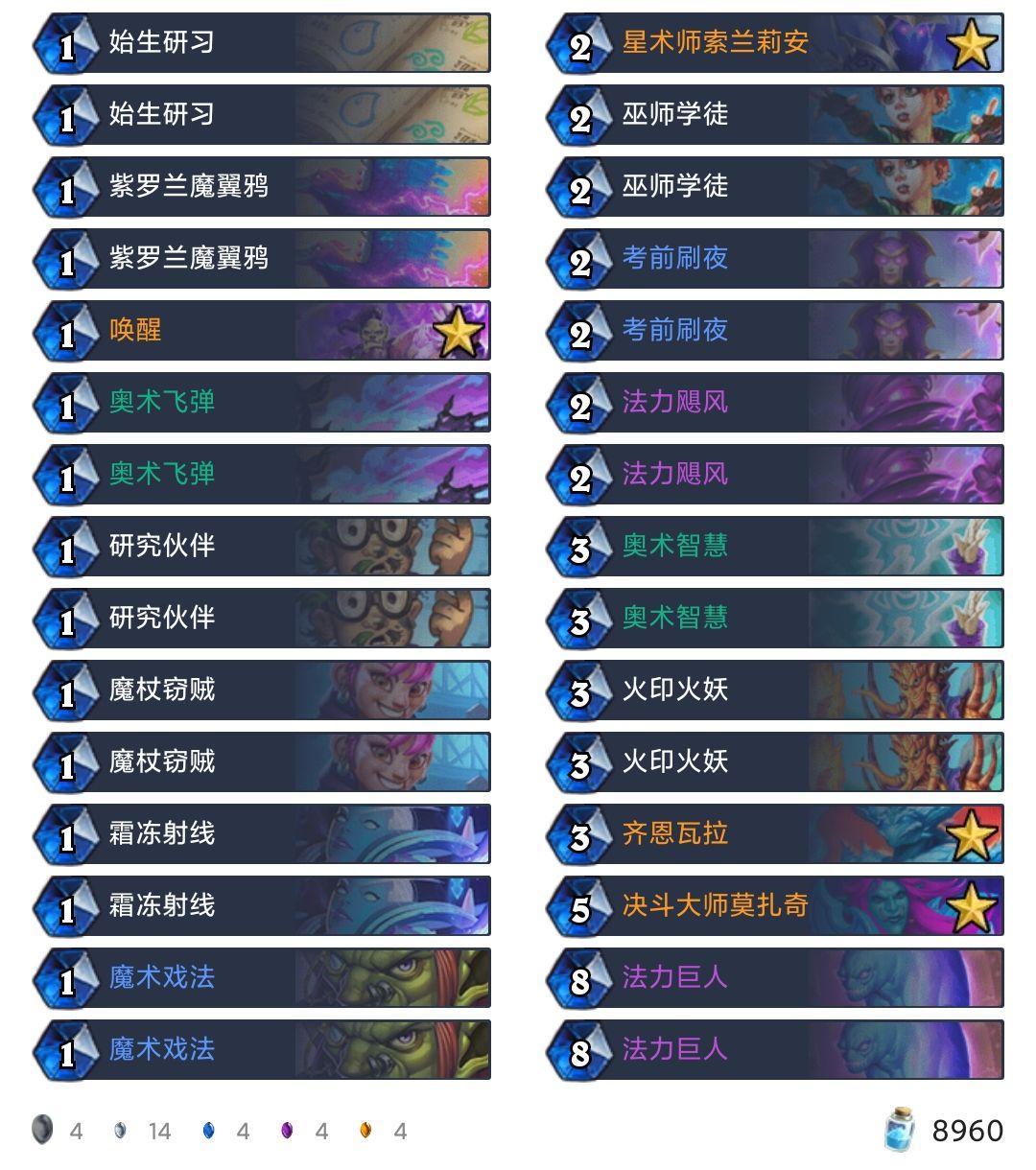 一套HSReplay上胜率54.7%,对局9300的法强法。一套法强节拍法,差别于带博学者普克尔特的极端斩杀流,那套法师更重视排场节拍。固然一样照顾了决斗巨匠,但是哀绿的利用就相对随意良多了,良多时候为了共同法力飓风刷三个以上的神通就间接打了。卡组的发作点就是低费的法力巨人和齐恩瓦拉的铺场,在得当的时机利用法力飓风和考前刷夜能包管手牌不竭,同时排场处于优势。