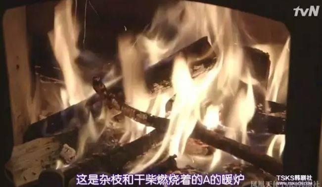 在节目里,有一组镜头,拍摄的是A和B给暖炉生火的画面。