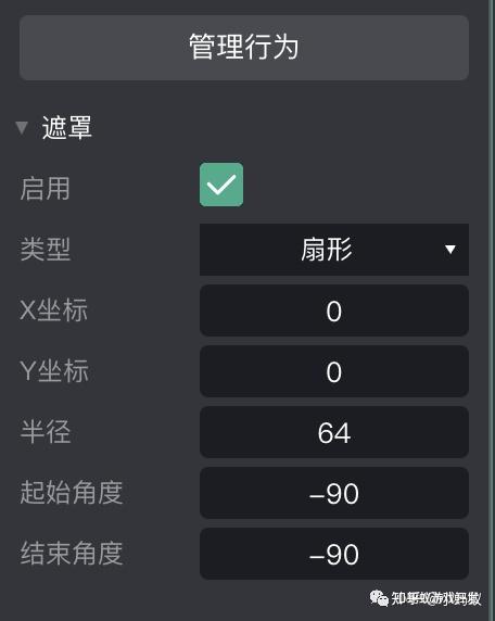 能够看到遮罩插件有良多的属性,那里我们利用“扇形”类型,用于实现一个圆圈的倒计时效果,操纵遮罩插件能够实现游戏中的诸如血条,冷却等效果。