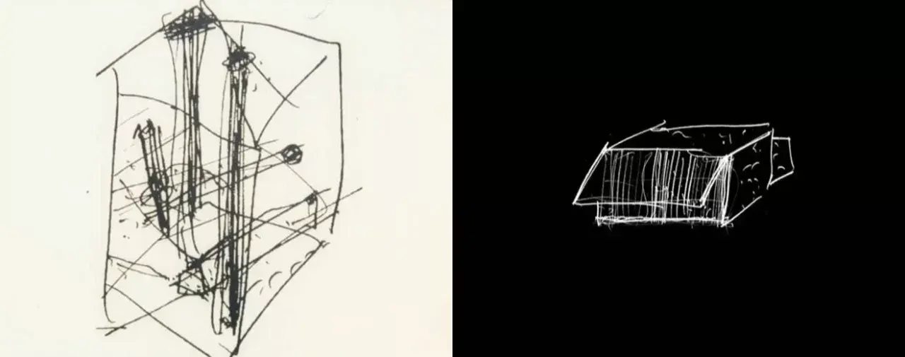 我们希望建筑是通明的玻璃体,但不是办公楼的那种玻璃幕墙,而是带有气泡的玻璃体(glass bubbles),确实很有魅力(seductive)且吸引眼球。人的曲觉(perception)能够感知到它的膨胀收缩(bulging in and out),凸出凹进(concave and convex),我们想要的就是那种诱人的视觉体验。但现实建造中不成能只做气泡玻璃,构造是至关重要的。我们需要设想一种构造,既能支持建筑,又能在巨大开敞的玻璃体中缔造封锁(enclosed)围合(hermetic)的空间,所以那个构造绝不只是粉饰(decoration)。