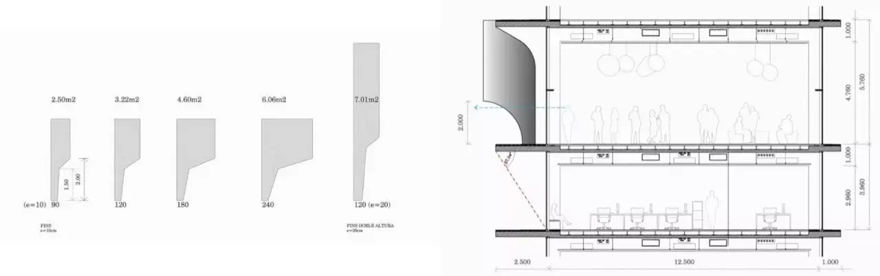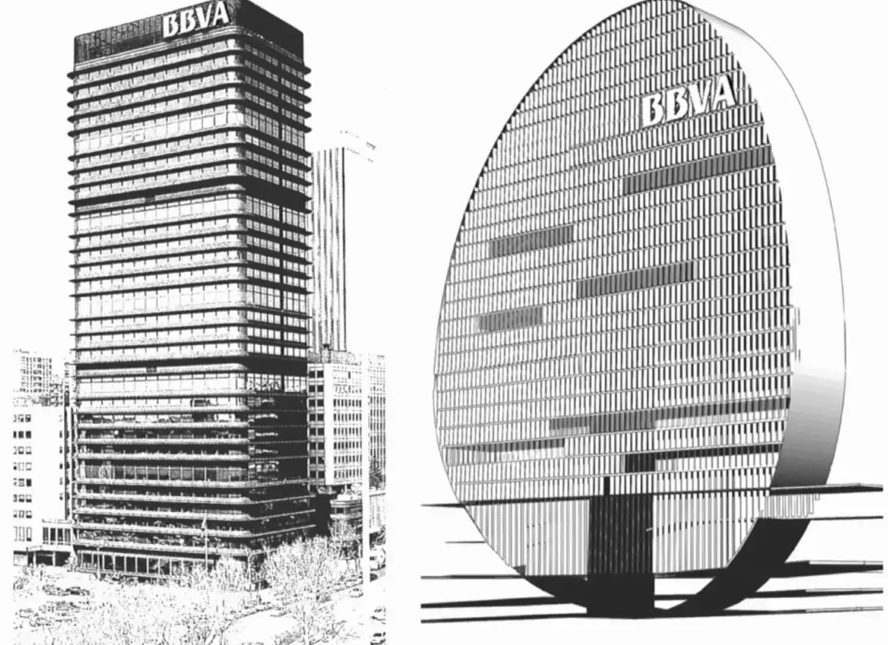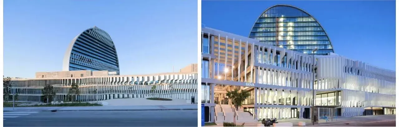 塔楼朝向从工具向改为正南北向,使之前纵向整体的空间有了些许突变的空间。地毯战略将现有建筑停止了部门剪切和填补,使之与新建筑成为有机整体。指状空间数量上的削减,使室表里空间变得更温馨。塔楼高度和BBVA老总部大楼的高度是一致的,那是建筑标准上的一种照应和联络。