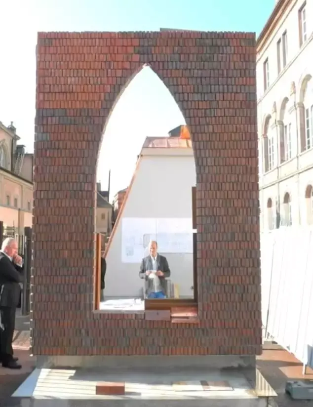 新建筑的材量上原修道院建筑履历了屡次补葺的各类外表质料与差别时代窗户都是汗青陈迹。通过中间折断新砖,整齐的面朝内,粗拙的面朝外拼贴,使新建筑在外墙材量上与修道院成立联络。我们曾经在某中国项目里也如许测验考试,但最初不了了之,此次在科尔马博物馆扩建中得到实现。哥特窗并没有利用拱形构造,而是在室内营造了一个矩形到拱形有机改变的深邃落地窗空间。