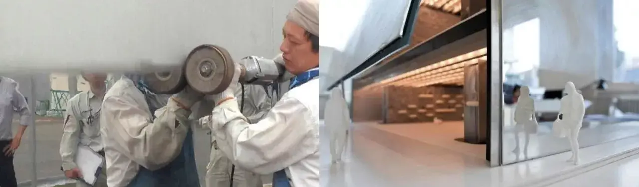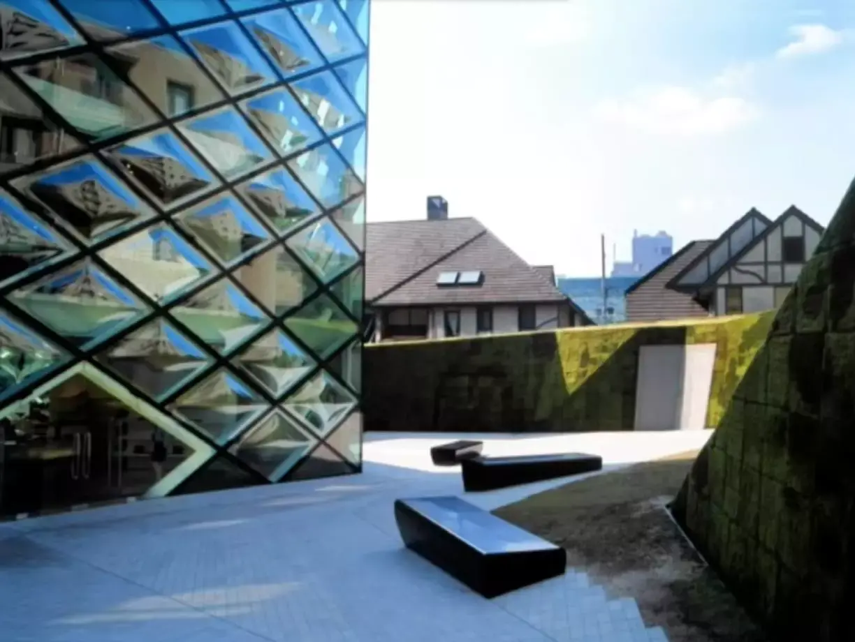 金属镜面抛光处置如许的外表吸引了过往行人的视线与猎奇心。但差别于能看见内部的商铺橱窗,视线是反转的;窗户不会正如预期地通透,行人只能看到本身的倒影。虽然那条街道自己并非一个鼓舞立足不雅望的处所,那座建筑自己就示意了一份让行人进来并停留一阵子的邀请。
