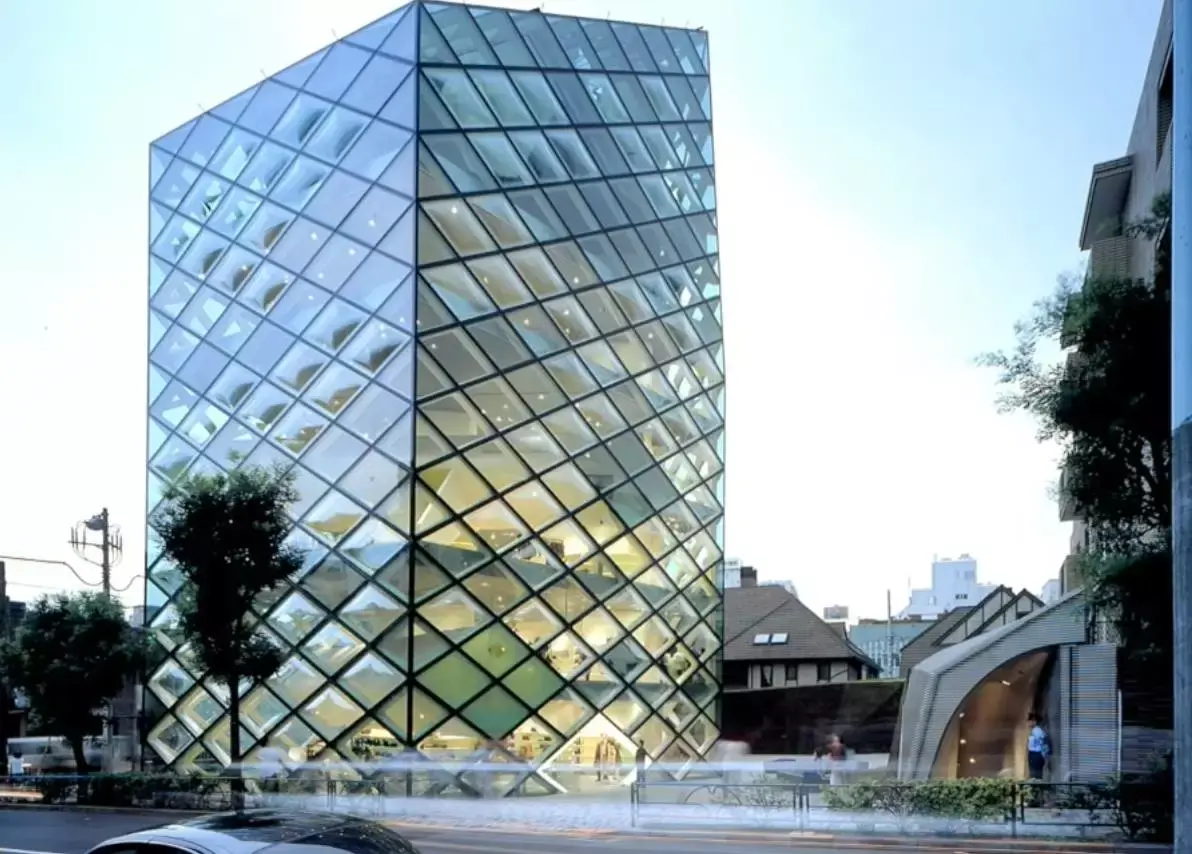 Prada青山店街景起首看前两个项目——Miu Miu和Prada旗舰店,它们是两种判然不同建筑气概的并置。你们可能还记得Prada旗舰店,我小我认为那是我所做的最棒的建筑之一。去年当Miu Miu旗舰店开业时,我到东京又看到了Prada青山店,做为建筑师我深入体味到本身的做品历经15年后仍然崭新(fresh)。