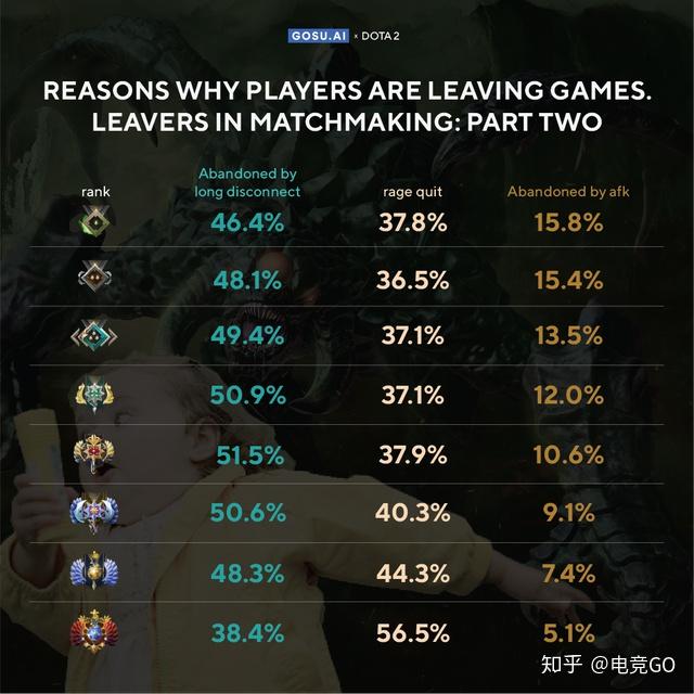 各个分段放弃角逐的原因占比(断线未重连、心态爆炸、挂机)