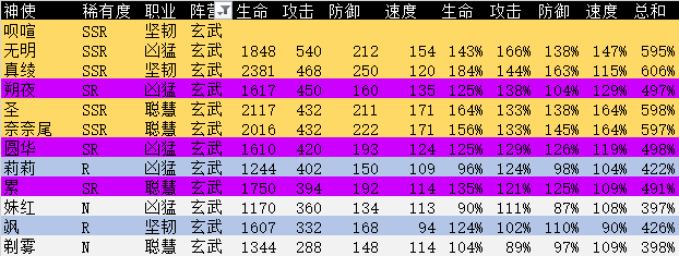 玄武阵营的危险根本都不高,而且SR和SSR中只要聪明神使奈奈尾拥有群体技能,因而是推图最慢的阵营。