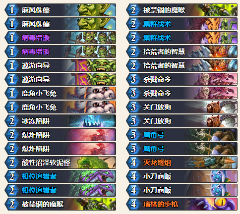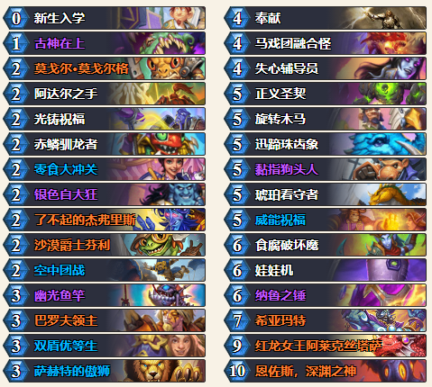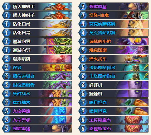 以下是我搜集整理的尺度卡组汇总,大部门卡组来自炉石盒子或vS周报。卡组仅供各人修建参考,请各人按照现实天梯情况停止调整。