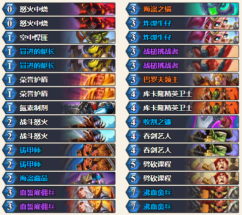 此中加粗的卡组为该职业胜率更高(我根据国服的数据,不外不异卡组在差别分段胜率也有所差别,那里只是根据均匀数据)。温馨提醒:版本末期不建议合卡!