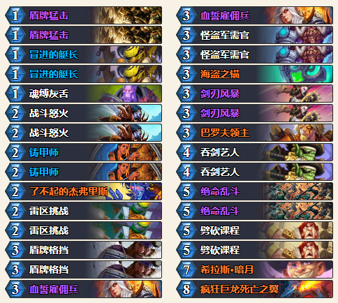 中低分段玩家能够用快攻瞎或者残片瞎。若是你卡组理解不错,能够利用吸血瞎,更合适高分段。
