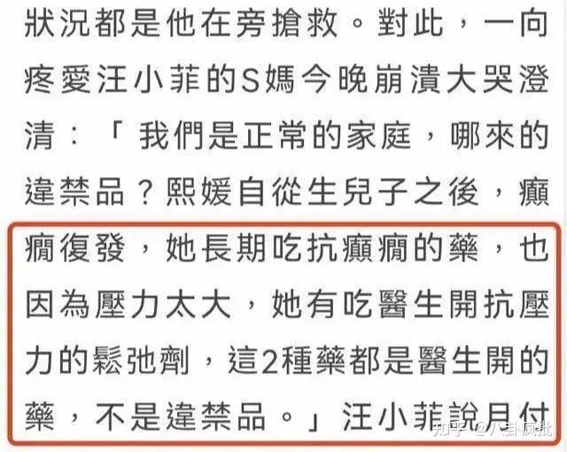 大S妈妈得知动静后,面临采访瓦解大哭,称我们是一般家庭,哪来的违禁药品?大S生完孩子后癫痫复发,需要持久吃药治疗。