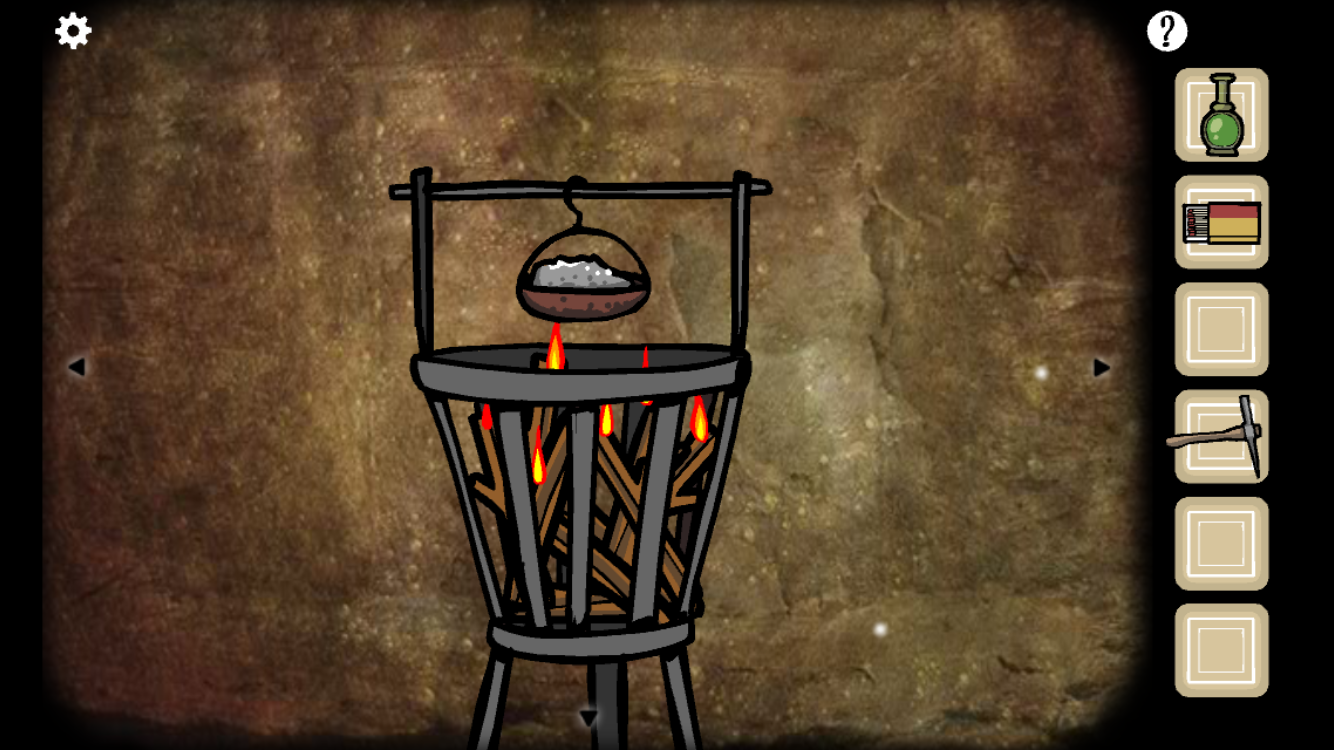 左转来参加景四:把锅挂上,柴放好点燃,墙上裂缝旁的也用火柴点燃