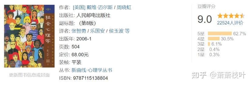 《社会心理学》那本书被美国700多所DX或学院的心理系所接纳,是那一范畴的主导教材,已经成为评价其他教材的尺度。 那本书将根底研究与理论应用完美地连系在一路,以富有逻辑性的组织构造引领学生领会人们是若何思索、影响别人并与别人成立联络的。是人们领会本身、领会社会、领会本身与社会之间关系的更佳的指点性册本。做者简介: