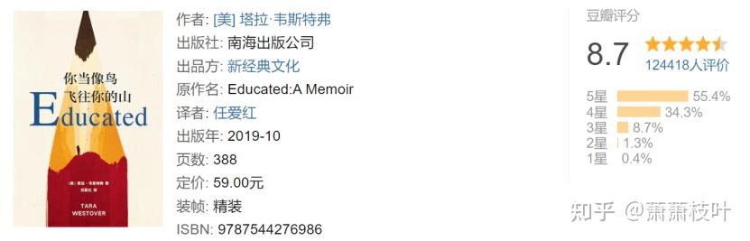 塔拉·韦斯特弗 Tara Westover,美国汗青学家、做家。1986年生于爱达荷州的山区。十七岁前从未上过学。通过自学考取杨百翰DX,2008年获文学学士学位。随后获得盖茨剑桥奖学金,2009年获剑桥DX哲学硕士学位。2010年获得奖学金赴哈佛DX访学。2014年获 剑桥DX汗青学博士学位。2018年出书童贞做《你当像鸟飞往你的山》。2019年因而书被《时代周刊》评为“年度影响力人物”。▶豆瓣出色书评