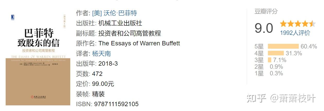 寡所周知,巴菲特每年城S亲身执笔给伯克希尔的股东写一封信,迄今已写了52年。每一封致股东信都洋洋洒洒数万言,信中回忆公司业绩、投资战略,还会就许多热点话题表达概念。 1996年,巴菲特受权劳伦斯·坎宁安传授编撰他的信件,并出书了超等畅销书《巴菲特致股东的信》,书中全数文字原汁原味地保留巴菲特第一人称的论述,将其投资思惟与办理聪慧分为公司治理、财政与投资、投资替代品、通俗股、兼并与收买、估值与管帐、税务等主题。从此坎宁安传授成为巴菲特的御用编纂,并得到巴菲特的受权进入伯克希尔停止深度调研采访,并创做姊妹篇《超越巴菲特的伯克希尔》一书,专门阐述伯克希尔的运营办理之道。 相较于前三版,《巴菲特致股东的信:投资者和公司高管教程》第4版保留了本来的架构和哲学,增加了巴菲特最新的年报内容。那些新增的内容被编入了书中的响应篇章,它们有机地融为一体,丝毫不影响读者在阅读过程中获得关于稳健企业和投资哲学的整体印象。为了帮忙读者区分书中哪些部门是新增的内容,在书末的“正文”部门标注了那些内容是选自哪些年度的致股东的信件。 20年来,本书四版获得了无数赞誉,但最有价值的莫过于巴菲特本人的评价:“坎宁安做了一项伟大的工做,他整理呈现了我们的理念。那本书比任何一本关于我的列传都要好,若是让我选一本书去读,那肯定是那一本。 ”做者简介: (美)巴菲特(Buffett.W.E.)