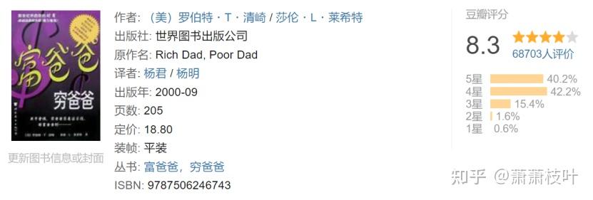《富爸爸,穷爸爸》是一个实在的故事,做者罗伯特・清崎的亲生父亲和伴侣的父亲对金钱的观点判然不同,那使他对认识金钱产生了兴趣,最末他承受了伴侣的父亲的建议,也就是书中所说的。“富爸爸”的不雅念,即不要做金钱的奴隶,要让金钱为我们工做,并由此成为一名极富传奇色彩的胜利的投资家。做者简介: