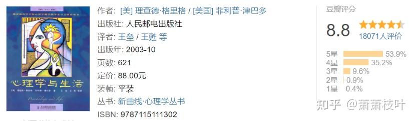 《心理学与生活》是美国斯坦福DX多年来利用的教材,也是在美国许多DX里推广利用的典范教材,被ETS保举为GRE心理学专项测验的次要参考用书,仍是被许多国度DX的“通俗心理学”课程选用的教材。那本教科书写做流利,通俗易懂,深切生活,把心理学理论与常识联络人们的日常生活与工做,使它同样也成为一般群众领会心理学与本身的极好读物。 做为一本包罗着丰硕的教育思惟和奇特教学办法的成熟教材,原书中所有元素——如由600余条词汇及解释构成的“专业术语表”,2000余条“参考文献”,以及近1000条的“人名和主题索引”等等,关于教学、研究和进修都非常贵重,其中译本完好地翻译和保留了那些材料。做者简介: